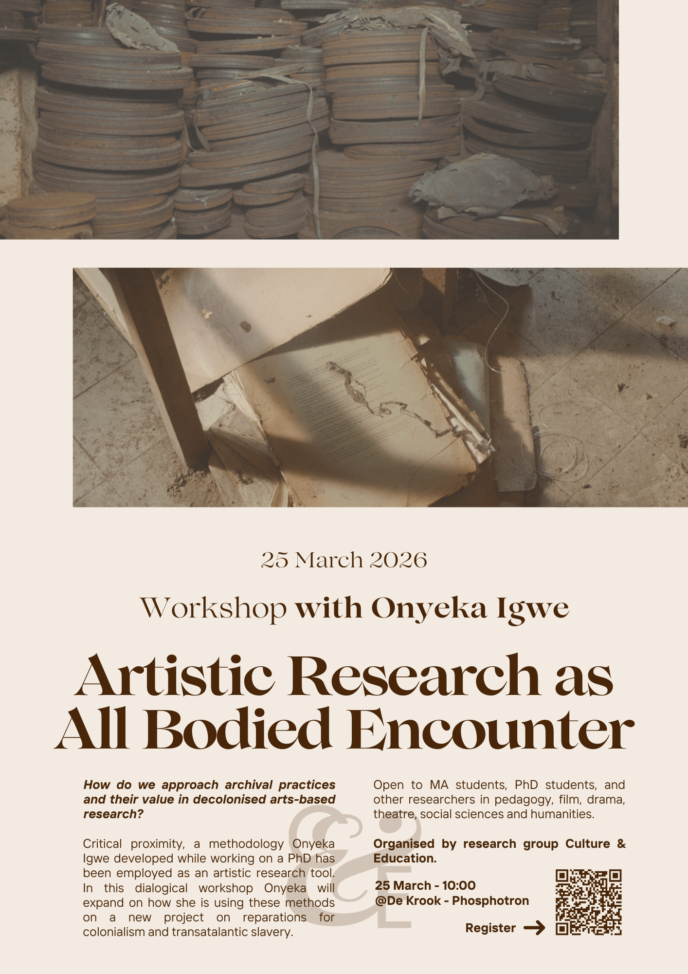 Workshop in het kader van Onyeka Igwe’s presentatie van haar film ‘a so-called archive’ op het Africa Film Festival. In de film reflecteert ze op de waarde van archiefbeeldmateriaal en het behoud ervan – of beter gezegd: de verwaarlozing ervan – in verlaten archiefinstellingen. In deze context levert ze kritiek op zowel het maken van het beeldmateriaal als het behoud en het collectieve vergeten van deze instellingen. Het uitgangspunt van deze film, haar filmtechniek en haar andere projecten nodigen uit tot een discussie over haar benadering van archiefpraktijken en de waarde daarvan in gedekoloniseerd, op kunst gebaseerd en door kunst geïnspireerd onderzoek voor onderzoekers in de sociale wetenschappen en daarbuiten.